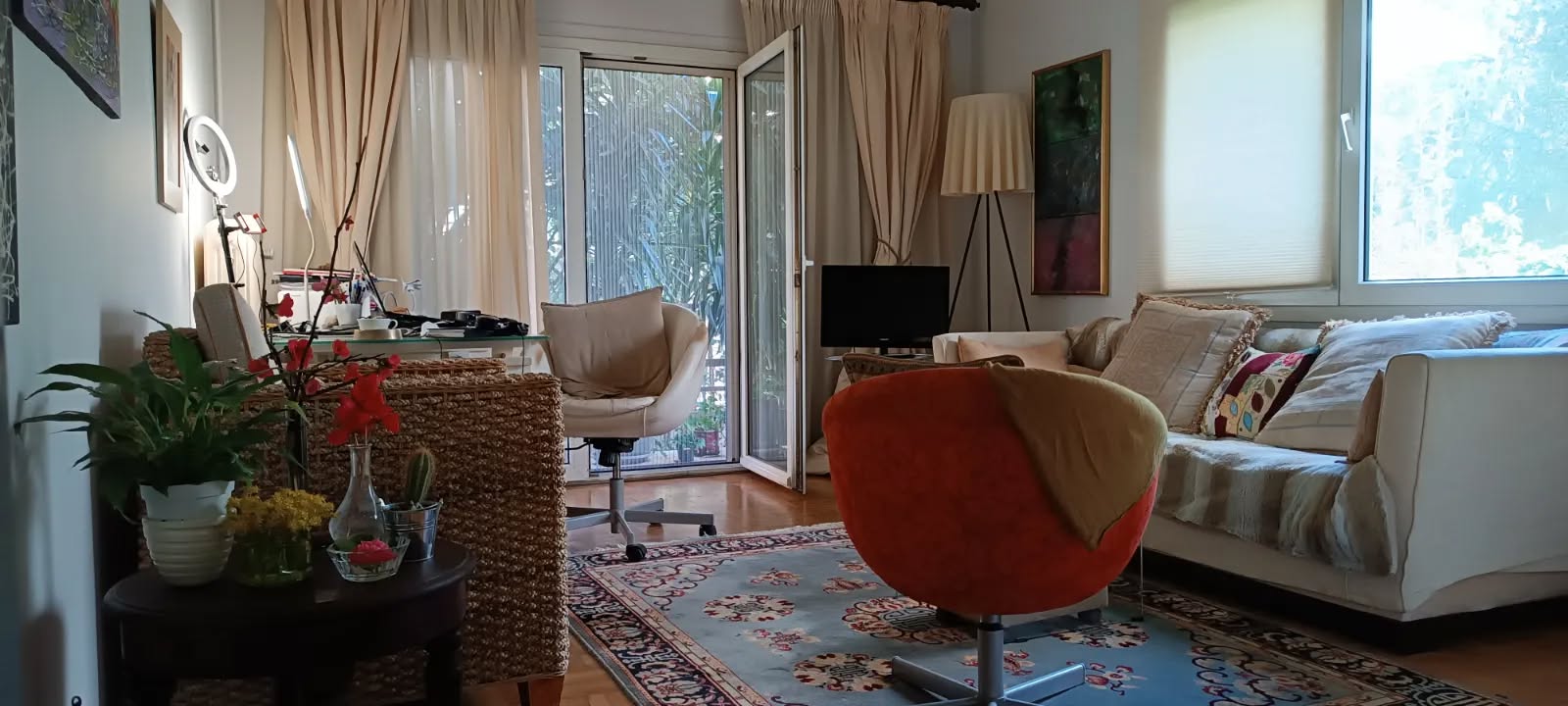 Ισόγειο ανακαινισμένο διαμέρισμα 86 τμ, κατασκευής 1979, με 2 υπνοδωμάτια, σαλόνι, κουζίνα, μπάνιο. Βρίσκεται σε καλή περιοχή, κοντά στην ρεματιά και σε πολυκατοικία με 8 διαμερίσματα. Είναι μισθωμένο έως ΟΚΤ 26 195000 κωδ 8-221